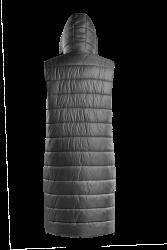 Dámská dlouhá zateplená vesta s odepínací kapucí. Vesta je vybavena oboustranným zipem, bočními rozparky na zip, boční kapsami na zip a vnitřní kapsou na zip. Na kapuci, podél hlavního zipu a rozparku se nachází decentní černé reflexní doplňky pro zvýšení viditelnosti.