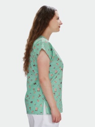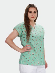 Zdravotnická halena se vzorem zvířátek je ušitá z bavlněného plátna. Má spadené rukávy, tvarovaný výstřih, 2 kapsy spodní a 1 náprsní. Svým vzorem vykouzlí úsměv na tvářích nejen dětských pacientů.