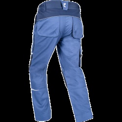 • pánské pracovní kalhoty ze strečové tkaniny • pružný pas s poutky na opasek • 2 přední kapsy, 2 zadní kapsy • 2 stehenní ventilační mesh kapsy na zip • 1 multifunkční kapsa na pravém stehně • zesílené kolenní části pro vložení kolenních chráničů • reflexní lemování a tištěné reflexní detaily • nohavice prodloužitelné o 5 cm. Svrchní materiál: 97 % bavlna, 3 % Spandex, 260 g/m²