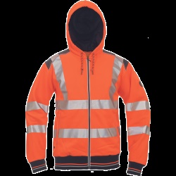 • HI-VIS celopropínací mikina s kapucí ze směsového úpletu polyesteru a bavlny • sedlo v kontrastní černé barvě lemované reflexní paspulkou • dvouvrstvá kapuce se stažením na šňůrku • 600D Oxford zesílená oblast ramen • tištěné 5 cm reflexní pruhy • 2 boční kapsy • elastické náplety na rukávech a v pase. Svrchní materiál: 65 % polyester , 35 % bavlna, 280 g/m²