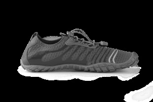 Barefoot obuv s prodyšným a rychlesnoucím svrškem, který se snadno přizpůsobí tvaru chodidla. Konstrukce obuvi umožňuje rychlé nazutí i vyzutí a poskytuje dostatek prostoru prstům. Obuv lze upevnit jednoduchým utahovacím systémem s reflexními tkaničkami. Měkká a poddajná podešev s protiskluzovým profilem chrání při pohybu po kluzkém povrchu. Otvory v podešvi odvádí vodu a vlhkost. Stélka z prodyšného EVA materiálu přispívá pohodlí chodidla.