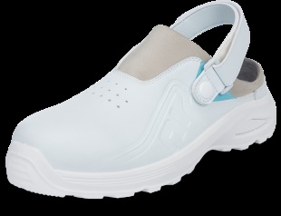 Bílý pracovní pantofel HYGOSAFE je navržený pro prostředí se zvýšenými nároky na hygienu, čistotu a komfort • dvouhustotní podešev PU/PU s vkladkou z NHP pěny zajišťuje výrazně měkčí došlap a vyšší pohodlí při celodenním nošení • unikátní kombinace hydrofobního mikrovlákna a neoprenu vytváří odolný, snadno udržovatelný svršek, který si zachovává pružnost a komfort • antibakteriální mesh podšívka podporuje ventilaci a příjemné klima uvnitř obuvi • odepínací patní pásek na suchý zip umožňuje upevnění obuvi dle individuálních požadavků pracovníka. Svrchní materiál: hydrofobní mikrovlákno