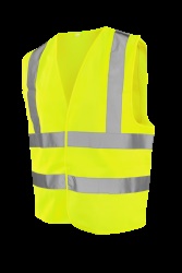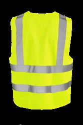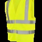 Výstražná vesta s horizontálními a vertikálními reflexními pruhy, zapínání na suchý zip. Lemování v barvě vesty.