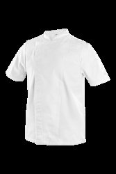 Kuchařský rondon v moderním designu s krátkým rukávem je navržený pro maximální komfort při práci v gastronomii. Směsový materiál na předním díle zajišťuje odolnost a upravený vzhled, zadní díl z lehké síťoviny podporuje cirkulaci vzduchu a tím zvyšuje komfort při práci v teple. Zapínání na druky usnadňuje oblékání a manipulaci během práce. Praktická funkční kapsička na levém rukávu poskytuje skvělé místo pro tužku. Doporučené použití: restaurace, hotely, catering, bistra, školní a závodní jídelny, gastro provozy a kuchařské školy.