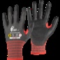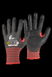 Protiřezné ESD rukavice s odolností proti řezu F a antistatickými a ESD vlastnostmi. Vnitřní odpor – výsledek: Rv Dlaň a prsty povrstveny polyuretanem. Podklad tvoří bezešvý úplet bez obsahu skelných nebo ocelových vláken. Funkce Touchscreen (možnost ovládat dotykové obrazovky) je podmíněna volbou vhodné velikosti rukavice. Rukavice jsou pratelné, čímž snižují spotřebu a tím vznik odpadu. Neobsahují silikon. Doporučené aplikace: EPA prostory, elektrotechnický průmysl, obsluha CNC strojů a robotů, logistika, skladování, manipulace s tabulovým sklem a předměty s ostrými hranami, manipulace s tabulovým plechem, řezání suchých, lakovaných nebo galvanizovaných dílů, řezání malých, suchých nebo lehce zaolejovaných dílů, údržba. CATcat. 2