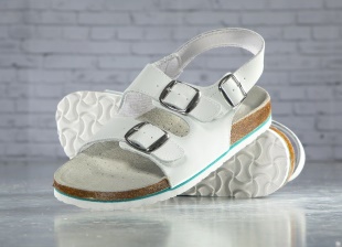 Korkové sandály se svrškem z materiálu action leather (štípaná kůže s povrchovou polyuretanovou úpravou).