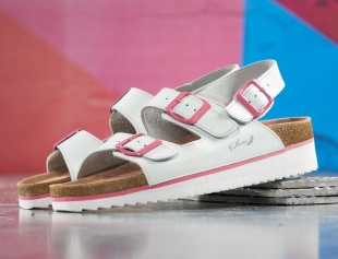 Dámský korkový sandál s podešví zvýšenou v patní části.