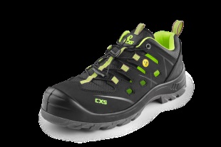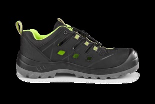 Bezpečnostní sandál, ESD, kožený, perforovaný s plastovou špicí a planžetou Dyna-Flex®, reflexní doplňky. Materiál: svršek z 1,6 - 1,8 mm štípenkové nubukové kůže (z jednoho dílu), vnější TPU ochrana paty, podšívka z prodyšné oděru odolné textilie, podešev: PU-PU olejivzdorná, antistatická, protiskluzová, odolná proti propichu.