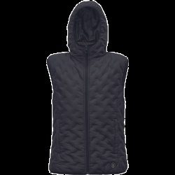 • zimní péřová vesta se zapínáním na zip a kapucí • 2 hluboké postranní kapsy na zip • elastický pas